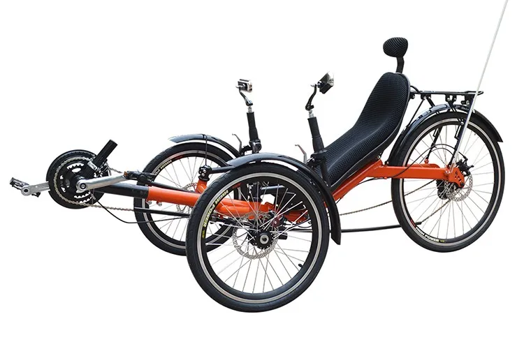 จักรยานสามล้อนอนปั่น TRIKEXPLOR M-010 รุ่นเริ่มต้น เกียร์ Shimano 24 สปีด เบรคดิสก์ BB5 ล้อหน้า 20 นิ้ว ล้อหลัง 26 นิ้ว พับเก็บได้ใน 30 วินาที รับน้ำหนักถึง 125 กก. มาพร้อมอุปกรณ์เสริมครบชุด เหมาะสำหรับผู้สูงอายุและผู้ที่ต้องการความสบายในการปั่นจักรยาน